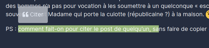 PS : comment fait-on pour citer le post de quelqu’un, sans faire de copier coller, sur Clubic ?!!?