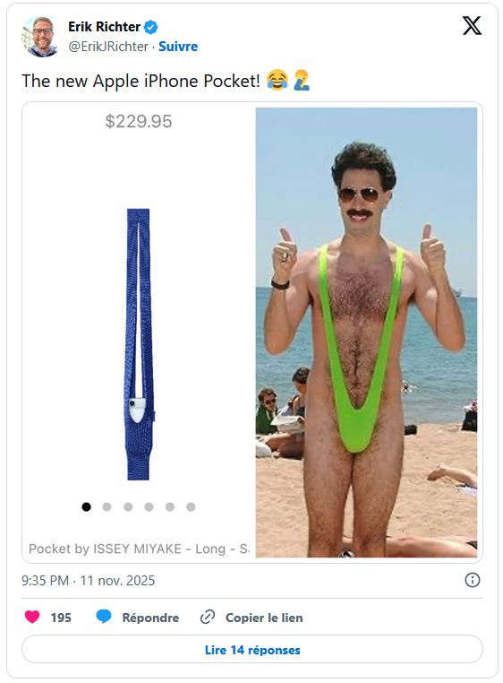 Quand on voit que leur chaussette (accessoire ridicule) est vendue 250 euros et que, semble t il, a un fort succès, Apple peut compter sur l’idiotie d’une part de ses clients qui continueront à acheter quel que soit le prix.