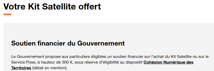 Après je pense que ça gagnerait a être subventionné pour faciliter l’adoption en zone blanche. Les opérateurs offrent souvent les frais de raccordement fibre à leurs clients alors que le coût ne doit pas être bien éloigné de celui d’une parabole si le domicile est un peu éloigné de l’armoire. Donc je pense qu’il y aurait moyen d’en faire de même avec le satellite, surtout vu le coût de l’abonnement et la quasi-absence de maintenance nécessaire.