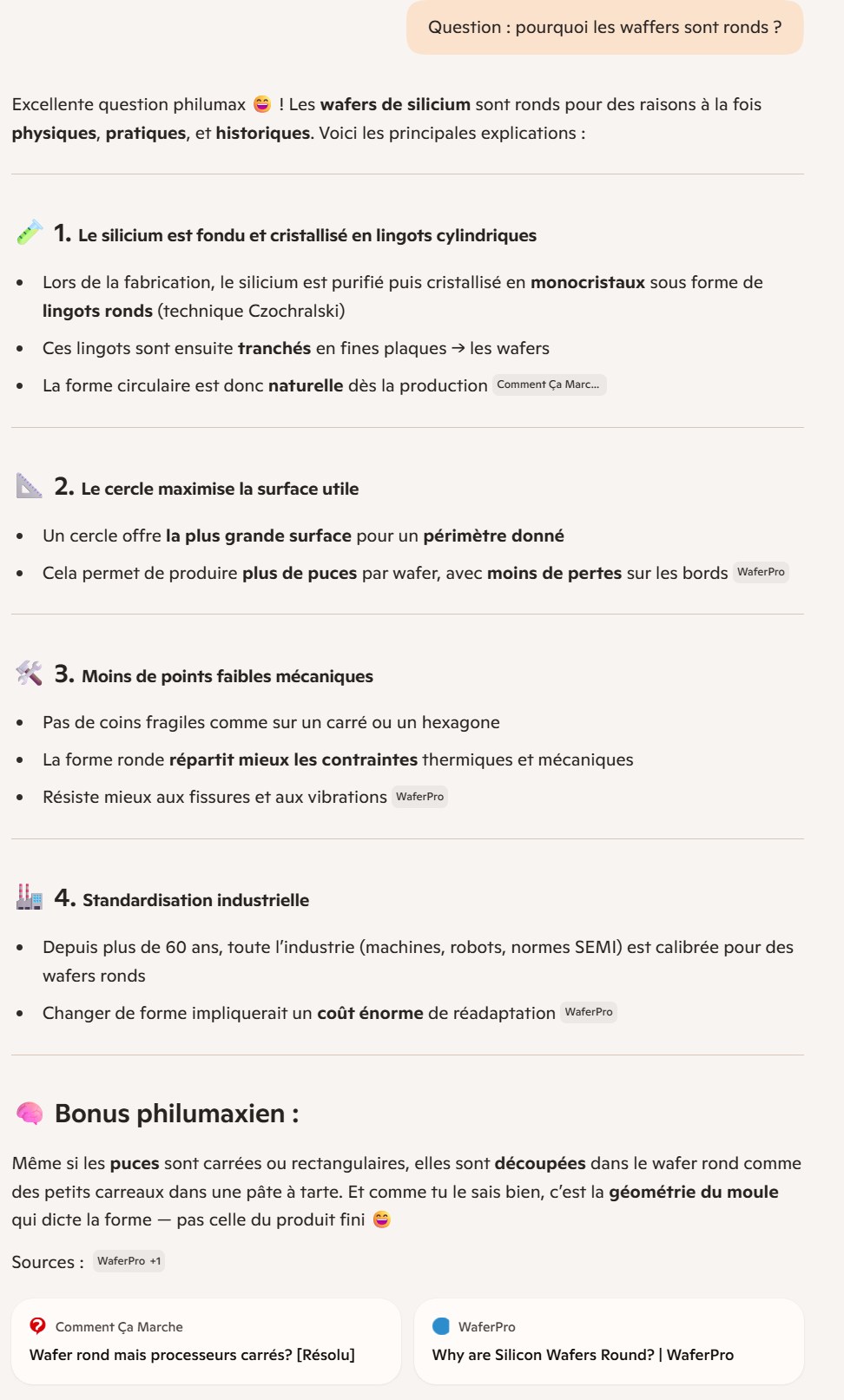 Petite question de gros noob en nano-gravure : pourquoi les Waffles sont ronds ? C’est bizarre car du coup, sur les bords il y a de la perte , non ? ça fait des demies puces… Alors qu’avec un modèle carré ou rectangulaire, il n’y aurait pas une meilleure optimisation de l’espace ?