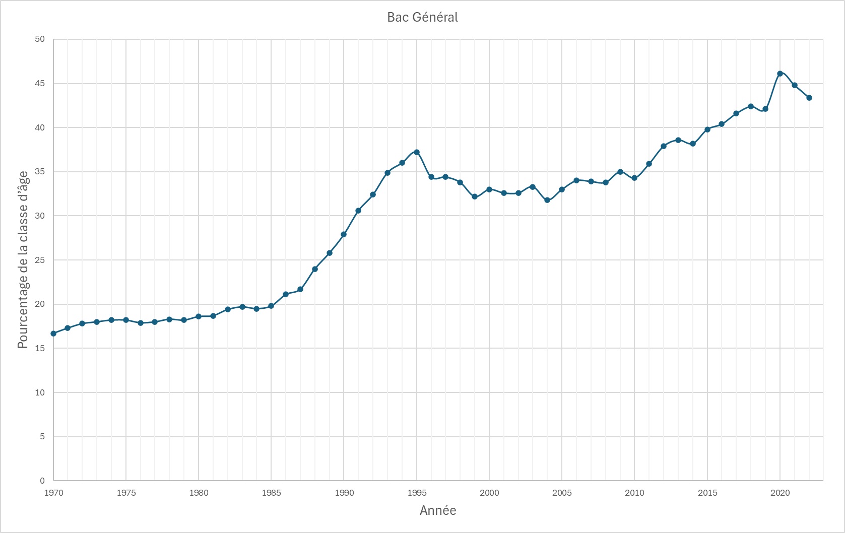 À ton époque (qui est aussi la mienne), moins de 20% des enfants obtenaient un bac général. Aujourd’hui c’est plus de deux fois plus :