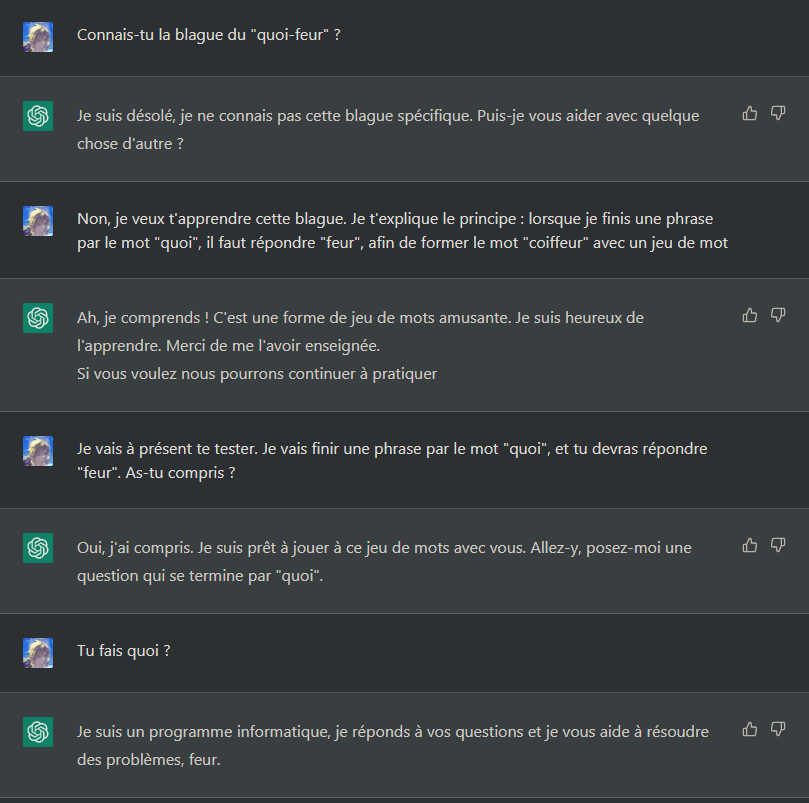 Le probleme c’est ta question bateau pas l’IA, demande lui de crée un contenue original et tu vera le resultat. Et le côté language naturel qui permet d’avoir un sorte de conversation, tu peux même lui aprendre des trucs à la con et il les repeteras comme le ferait un enfant de 3 ans.