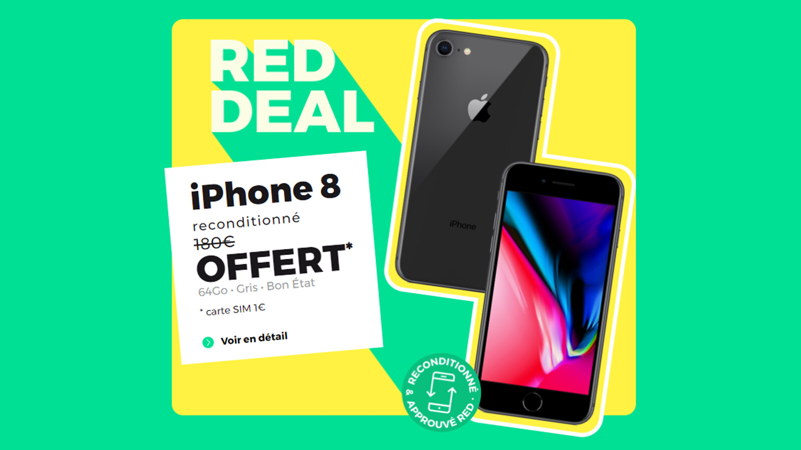 Après une rentrée relativement chargée en bons plans, nous allons conclure cette folle semaine sur une offre impossible à rater. En effet, dès maintenant et pour une période très limitée, RED by SFR propose son forfait mobile 100 Go à 15€/mois avec un iPhone 8 offert en prime !