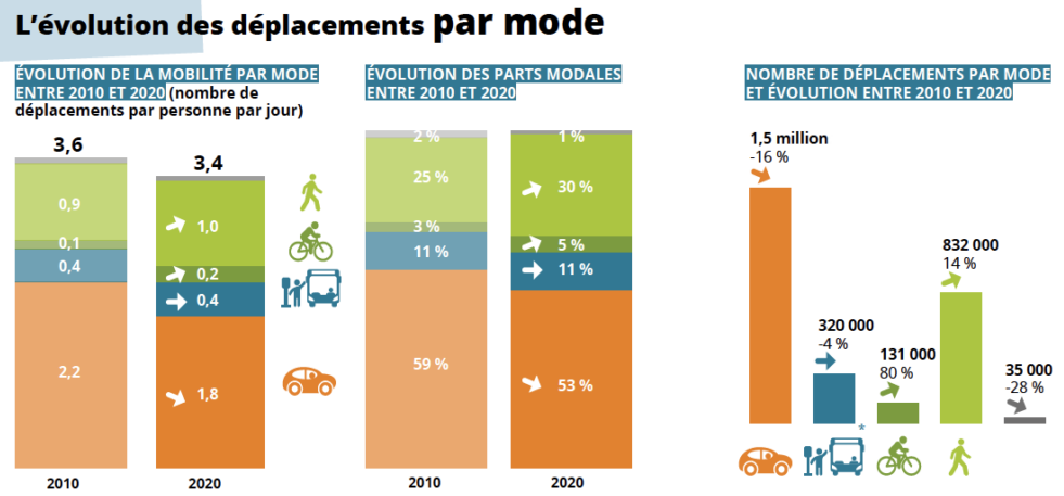 Et les « gesticulations » ont permis de largement développer la pratique du vélo, de la marche et des transports en commun, et donc, de réduire le nombre de voitures, ce qui forcément joue un rôle dans cette baisse de la pollution.