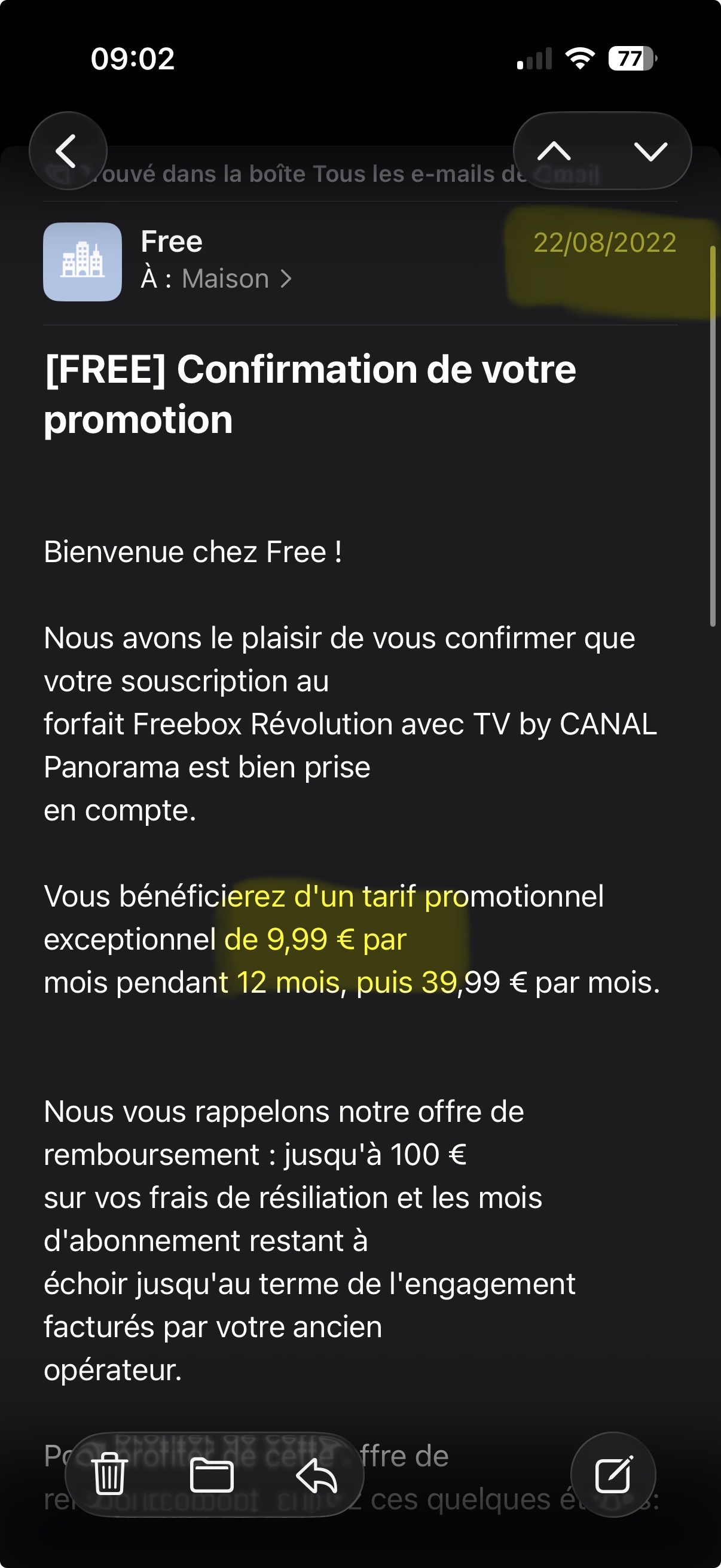L’abonnement fibre entre 2020 et 2023 c’était 10€ voire 15 maxi