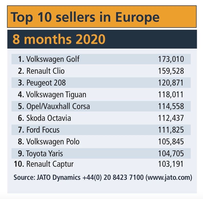 Véhicules les plus vendus en Europe - plutôt des compactes :