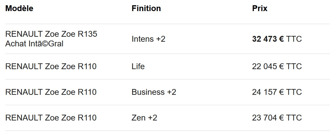 Le niveau, la qualité, la taille et la tech embarquée n’ont rien à voir, ni le prix d’accès de la Zoé qui est bien inférieur à la Tesla 3 :