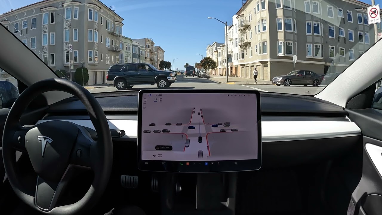 En regardant attentivement la vidéo, on voit vite la « non fiabilité/sécurité » du système. Des voitures et piétons pop ou disparaissent de l’écran : voitures perpendiculaires (il y en a bien une au début une autre après, mais deux autres n’existent pas) voiture sur le trottoir qui pop derrière les voitures en stationnement alors qu’il n’y a que des immeubles, donc pas de voiture même derrière une grille de jardin possible à cet endroit, et ce n’est que la première minute de vidéo. Voiture qui hésite, qui force le passage au niveau camion Amazon pour ensuite doubler à 2km/h (La Tesla s’écarte sur la voiture grise qui n’est pas encore passée et oblige l’autre à s’arrêter, et le mec est content « very good » le refus de priorité… . La moto « Transformer » qui triple de hauteur, disparaît, ré-apparaît. Elle se place sur la voie de gauche après avoir tourné alors qu’elle tourne à droite ensuite. Elle se positionne à gauche, se fait doubler par la droite pour se rabattre à droite ensuite (et le mec continue « very goooood »)… SERIEUSEMENT?!. On croirait voir un conducteur en apprentissage dans ses premières heures et c’est sensé être plus secure ???