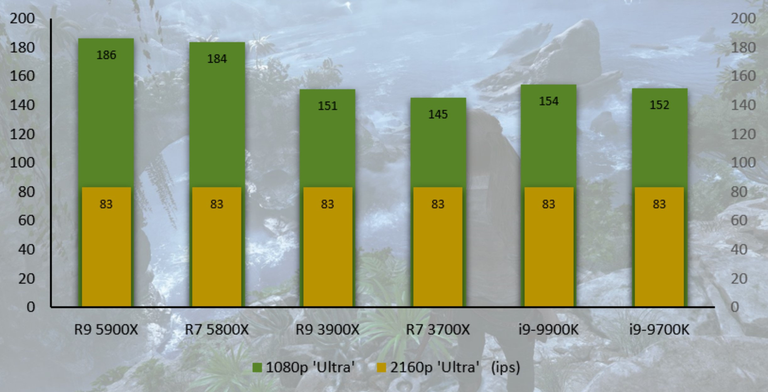 (( En 3 840 x 2 160, les différences sont pour ainsi dire imperceptibles. Ce test est intéressant pour confirmer que dans de telles circonstances, c’est bien sûr la carte graphique qui fait la différence et notre RTX 3080 est ici le facteur limitant. ))