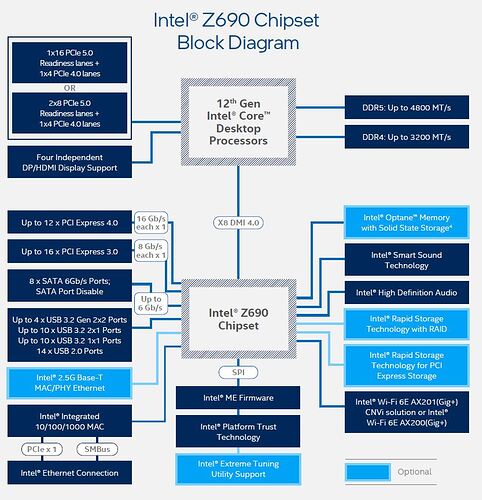 Pour pouvoir exploiter deux SSD 4x sur le second port, il faudrait pouvoir configurer ce contrôleur en 1x8G5+2x4G5+1x4G4, ce qu’Intel n’a pas prévu.