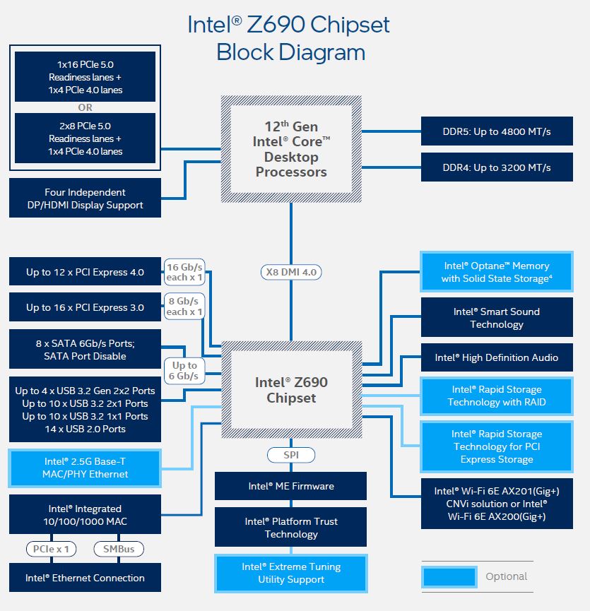 Sur le chipset par contre y a plus de souplesse, on a des lignes individuelles qui peuvent être groupées par 2, 4 ou 8 (et peut-être même 16 en Gen3 ?), et le 3ème port peut donc être configuré soit en 1x8 soit en 2x4.