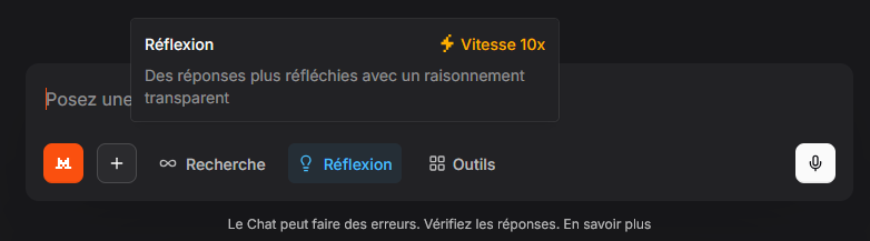 En effet, en passant par le site y a bien le mode réflexion, je l’utilise rarement via le site. bizarre que via API en passant par certaines plateformes il est l’un des rares modèles à ne pas posséder de raisonnement.