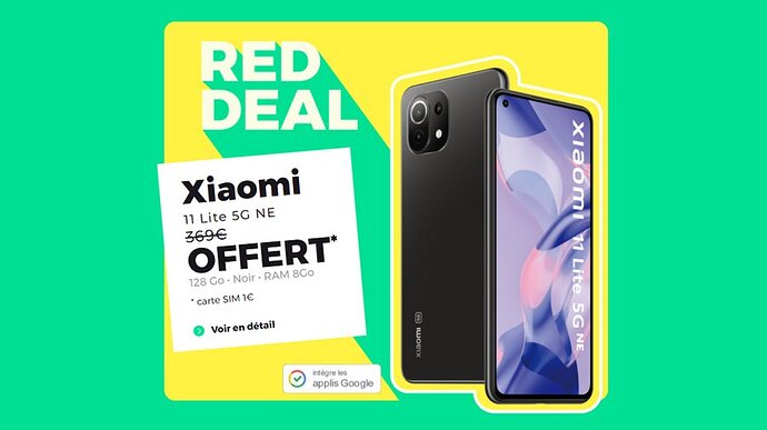 RED by SFR relance le RED DEAL, avec cette fois-ci en lieu et place de l’iPhone 8 reconditionné un Xiaomi 11 Lite 5G NE neuf offert pour toute souscription à leur forfait de 15€ par mois.