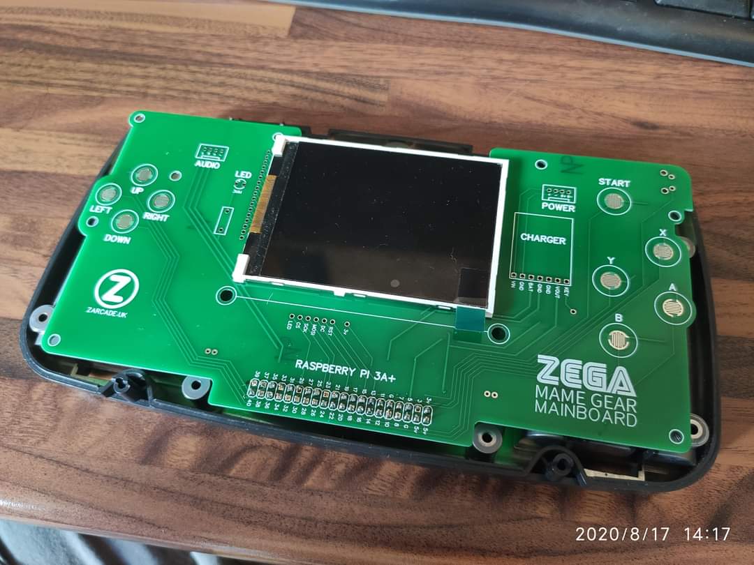 Un prototype basé sur un véritable boîtier de Game Gear et sur une carte Raspberry Pi 3 Model A+.