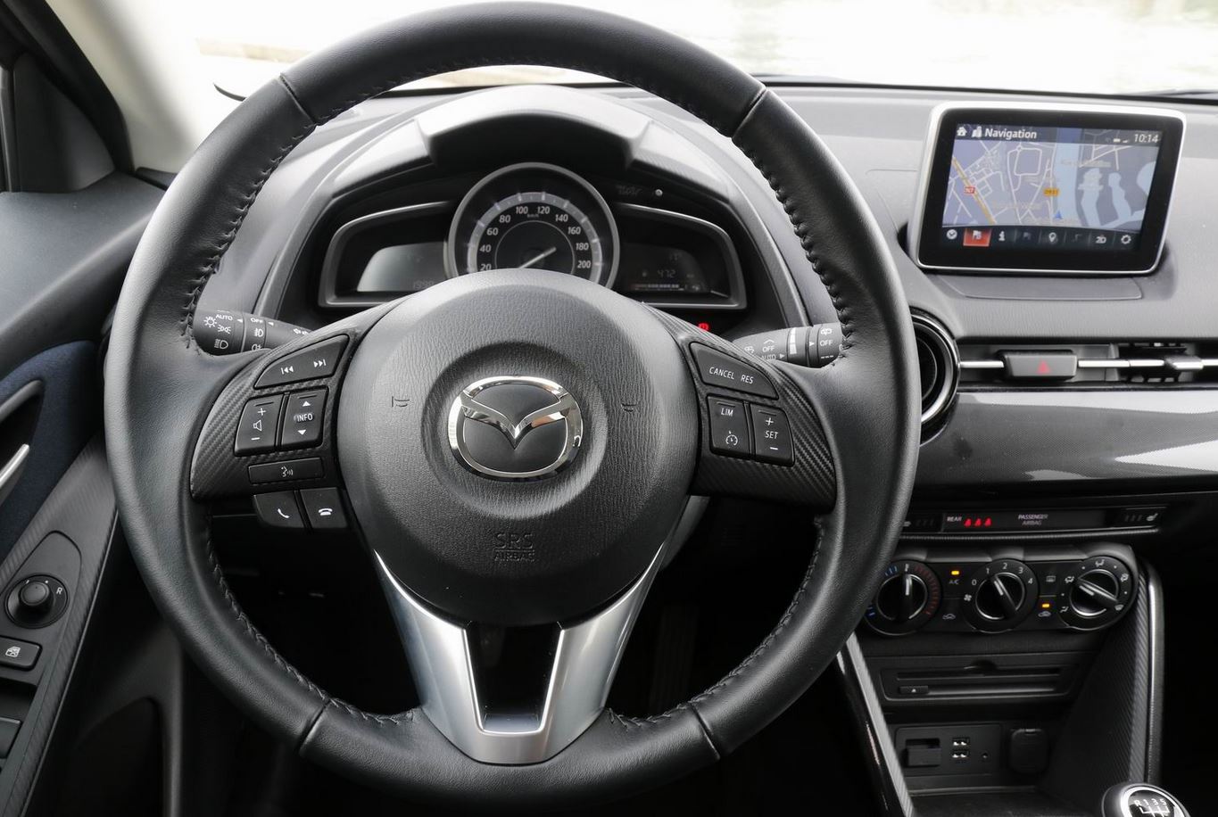 Rien de tel que des bons vieux boutons et interrupteurs. Quand on a intégré où ils sont, pas besoin de lâcher la route des yeux pour régler l’airco et les autres fonctions.