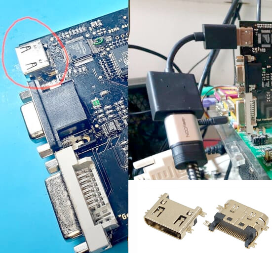 Je dirais une sortie mini-HDMI avec câble adaptetauer mini → taille normale. Il a probablement choisi un connecteur « mini » par manque de place sur son PCB.