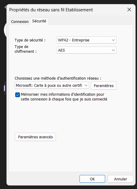 Et ensuite, tu peux te connecter au réseau « Etablissement », un WPA2 enterprise :
