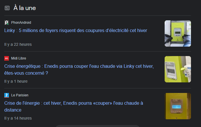 La France, cette grande puissance mondiale… qui finalement n’est pas capable d’être indépendante énergiquement. On va tous le sentir passer dans quelques semaines ou mois, et ça sera certainement bien plus qu’une simple coupure de chauffe-eau… L’extinction de relais téléphoniques sont prévus, et autres joyeusetés. On va se retrouver comme sous la Seconde Guerre Mondiale, un monde de restrictions au XXIe siècle. Des boulangeries sont en train de fermer car elles ne pourront plus payer leurs factures d’énergies aux coûts exorbitants. Et ce n’est que le début… Le peuple va-t’il se laisser faire ?