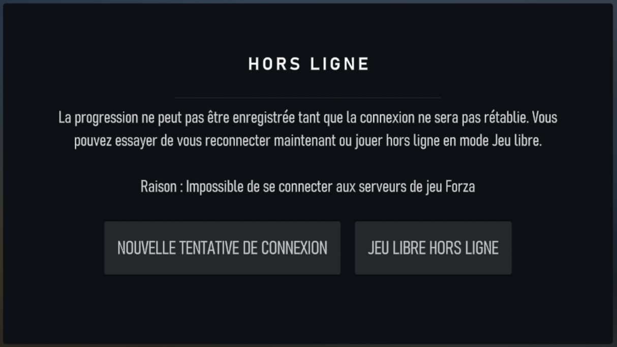 Par contre il peut y avoir certaines limitations. Par exemple je viens de tester à l’instant sur Forza Motorsport, on peut bien le lancer hors connexion, mais les sauvegardes ne sont alors pas disponibles :