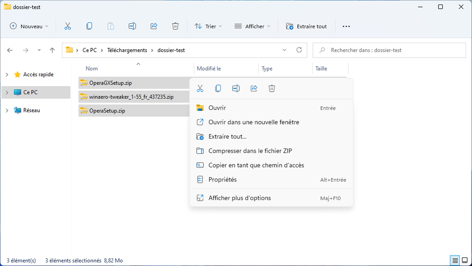 j’ai découvert récemment qu’en faisant « Shift+Clic droit » on affiche le menu comme avant, sans devoir cliquer sur « Afficher d’autres options » .