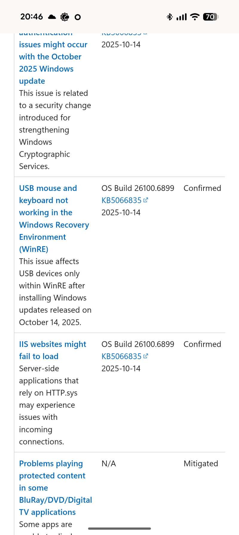 En lisant l’article, je suis allé mettre à jour la 25H2 sur un autre ordinateur DELL et la mise à jour KB5066835 n’était pas proposée. Il y a quelque jours, j’avais mis à jour aussi la 25H2 sur un ASUS, je ne sais pas quelle version mais pas de soucis.