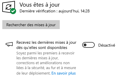 Quelqu’un a réussi à désactiver les mises à jour automatiques ? J’ai souvent la mauvaise surprise de voir que mon PC a redémarré tout seul et ne trouve pas comment l’éviter