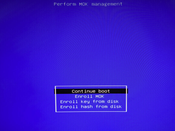 En gros une fenêtre avec la commande « enroll mok » doit avoir été utilisée, pendant l’install ou via la commande pour rebooter dessus