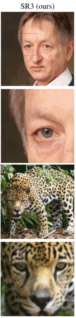 SR3 is a super-resolution diffusion model that takes as input a low-resolution image, and builds a corresponding high resolution image from pure noise. The model is trained on an image corruption process in which noise is progressively added to a high-resolution image until only pure noise remains. It then learns to reverse this process, beginning from pure noise and progressively removing noise to reach a target distribution through the guidance of the input low-resolution image…