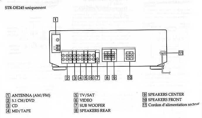 bonsoir, je vien d’arriver chez moi, et j’ai trouver le modele de l’ampli, c’est un sony str-de245, voila si vous avez besoin de photos des ports disponibles n’hesitez pas a me demandez