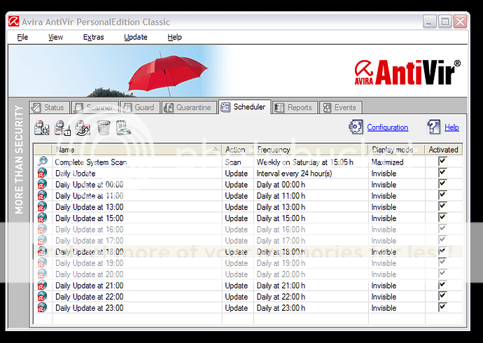 1) Commençons par les mises à jour qui sont soit disant possibles que toutes les 24 heures. Ceci est bien entendu un point faible de la version gratuite d’Antivir (sachant qu’il vaut mieux avoir les dernières mises à jour le plus vite possible).