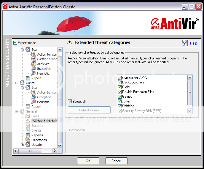 5) Enfin dans « General » allez sur « Extended threat categories » et cochez « Select all » pour augmenter votre protection.
