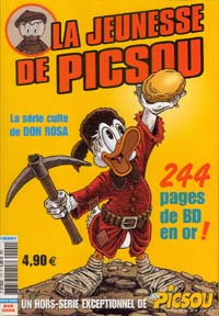 Je suis un fan inconditionnel des aventures de picsou & co et principalement de celles de Don Rosa, et la jeunesse de picsou est peut être la BD qui m’a le plus marquée: drôle, émouvante, triste et pleine d’espoir, je crois que je suis passé par tous les sentiments en lisant ces histoires. Et ce qui m’amuse c’est qu’aujourd’hui à 25 ans, quand je dis que j’ai appris beaucoup de choses grâce à Picsou, que j’étais assez cultivé étant gosse en partie grâce à ces hisoires, tout le monde rigole, parceque souvent, ils ne connaissent que les histoires sans saveur du type journal de mickey; mais si ils avaient lu celles de Don Rosa ils auraient compris car même tournées à la sauce « canard », la majorité des histoires ont malgré tout une base historique bien réelle. Je ne remercierai jamais assez Don Rosa de m’avoir permis de m’évader des heures et des heures dans ses histoires, de vivre dans un monde de rêve et d’aventures incroyables, et tout à la fois, de m’avoir appris autant de choses sur l’histoire du monde.