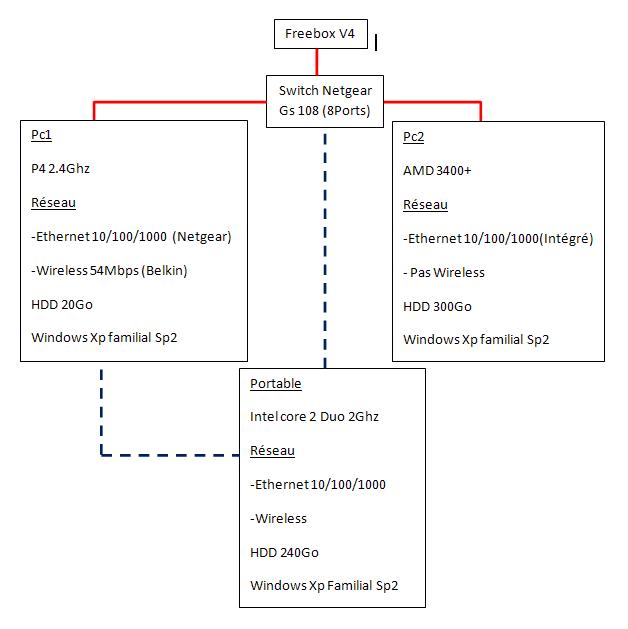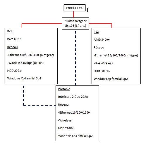 Je pense que je vais faire comme toi, mon premier Pc (466Mhz :D) qui traine au fond d 'une armoire, vas reprendre du service … Mdr de plus que le Pc1, du reseau, vas bientot évoluer ( Le ptit frere en as marre de sa carte video -NVIDIA TNT2 model 34 - c’est chiant pour jouer à Wow *-) -) j en profiterais pour prendre deux bons Hdds et une tite carte Reseau.