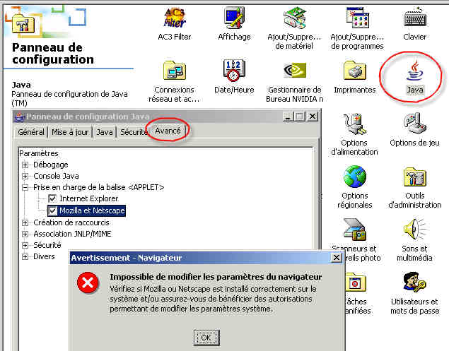 arf, oui mais la tu parle de ActivX, c’est une autre technologie que java. Je ne pense pas qu’il y ait un rapport avec notre souci.