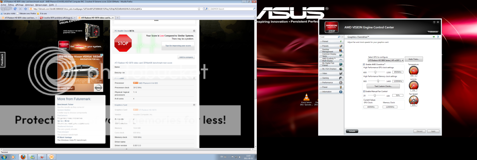 Houlà,quel boxon :paf: sur le 2ème screen les fréquences en encadrés sont celles pour la 3D et elles sont normales : 850/1200 Mhz,mais alors je ne m’explique pas le « 400/1200 Mhz » :etonne2: voilà ce que tu devrais avoir :