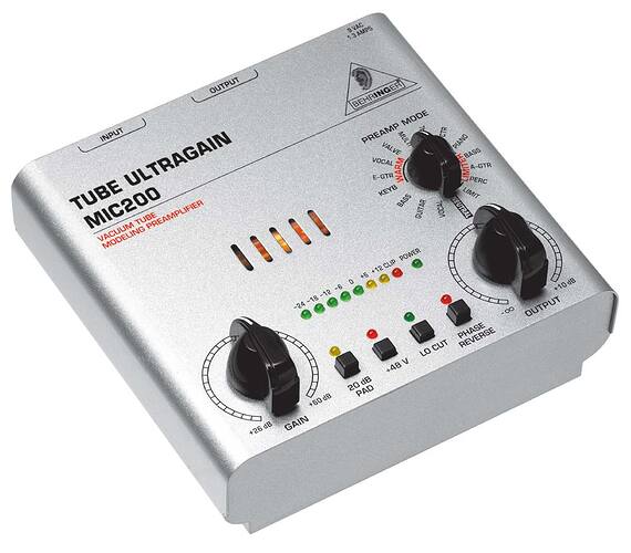 j’utilise également un préampli à lampe MIC 200 de berhinger