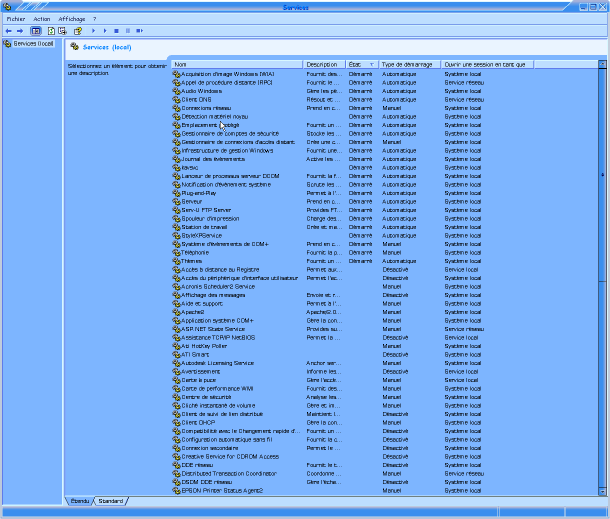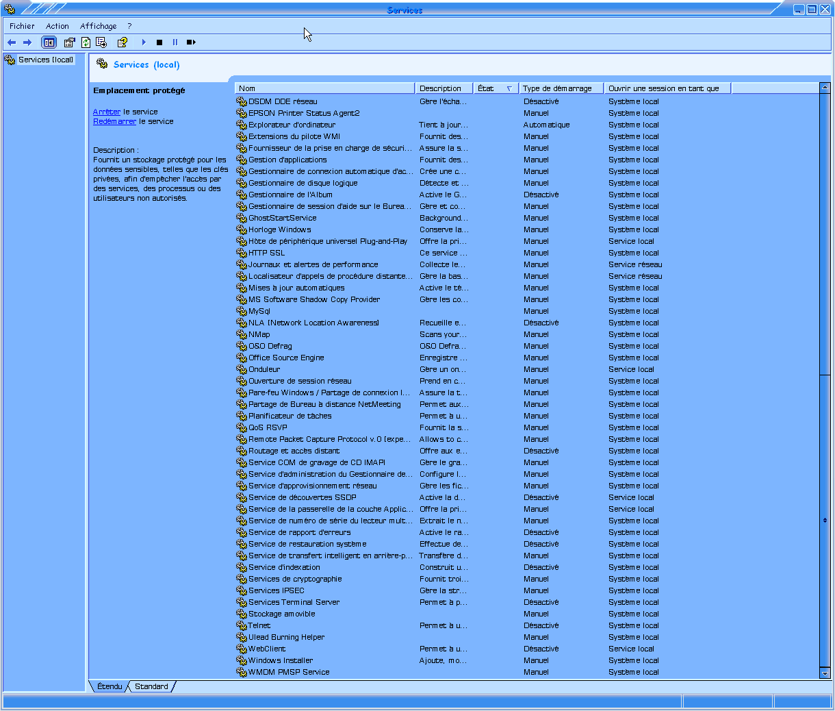screenshots de mon gestionnaire de service: