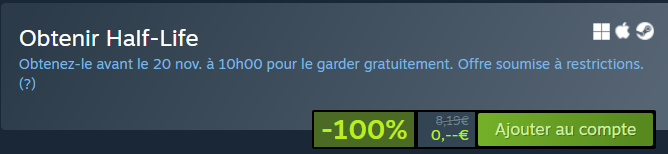 Perso, j’avais H-L en version cd et pas Steam, et ça m’empêchait d’accéder à certaines choses. Alors je l’ai pris aussi, également dans le but de prendre Black mesa un de ces jours. ^^