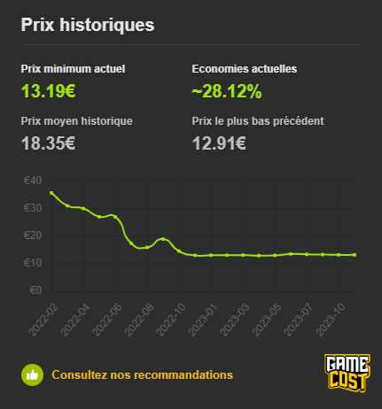 Ici 13€ C’est un très bon jeu qui vaut son prix. De plus, l’édition définitive est livrée avec beaucoup de choses.