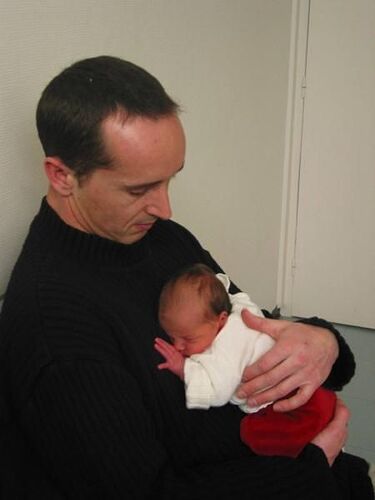Y’a juste un moment y’avait la tête seulement à moitié sortie, le médecin m’a demandé "vous voulez voir la tête monsieur ?", mais j’ai préféré attendre qu’elle sorte entièrement