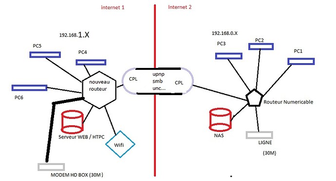 et les Lan en 192.168.1.xxx … Donc comme le routeur numericable il neu peu pas accéder au réseau de l autre cote …
