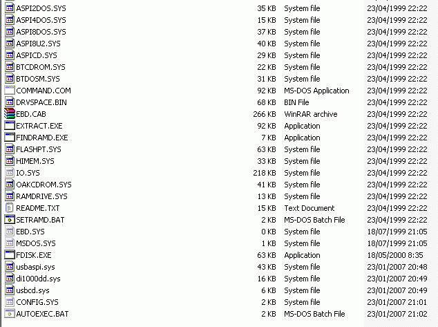 voici comment par exemple se présente une disquette win98se avec les drivers usb :