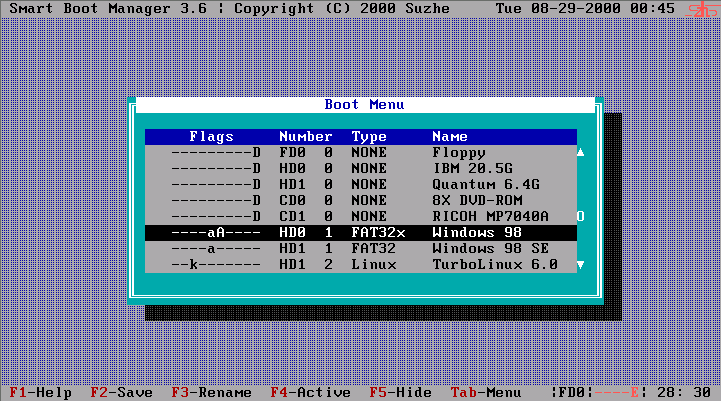 telecharge et installe smart boot manager sur une disquette et tu pourra booter sur n’importe quel support amorcable relié à ton pc.