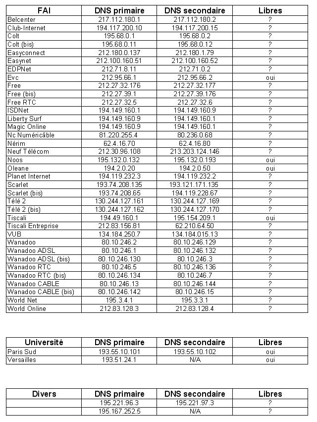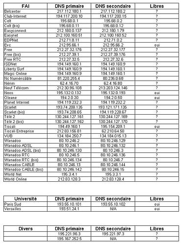 Il indiquait les 2 DNS utilisées, séparées d’un / pour le dernier octet …