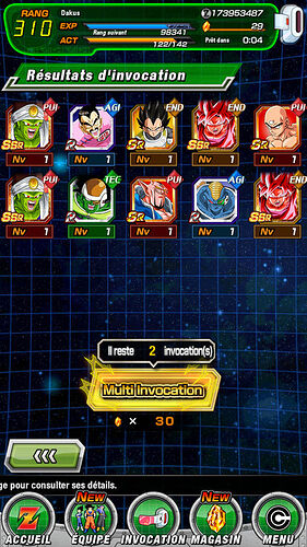 J’aurais préféré autre-chose que ces trois Trunks Ikari mais trois Demi God Tier en trois multis c’est quand même dingue… mais il n’empêche que je me suis demandé comment c’était possible de tomber trois fois sur celui-là… heureusement, je ne l’ai pas eu sur ma multi-invocation gratuite. Mais limite j’aurais préféré car là je n’ai eu que de la merde (R et SR) :yeux2: