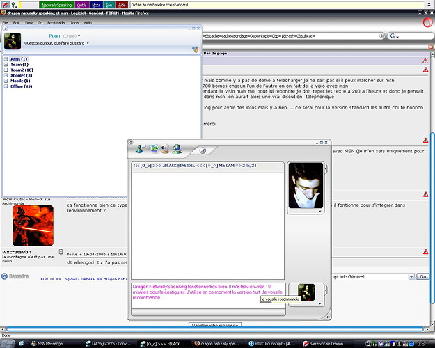 ma soeur etant sourde ( elle parle normalement ) me parle pendant la visio mais moi pour lui repondre je doit taper les texte a 200 a l’heure et donc je pensait avec ce log pouvoir dicter mes mots pendant qu’il s’ecrivent dans msn on aurait alors une vrai discution telephonique