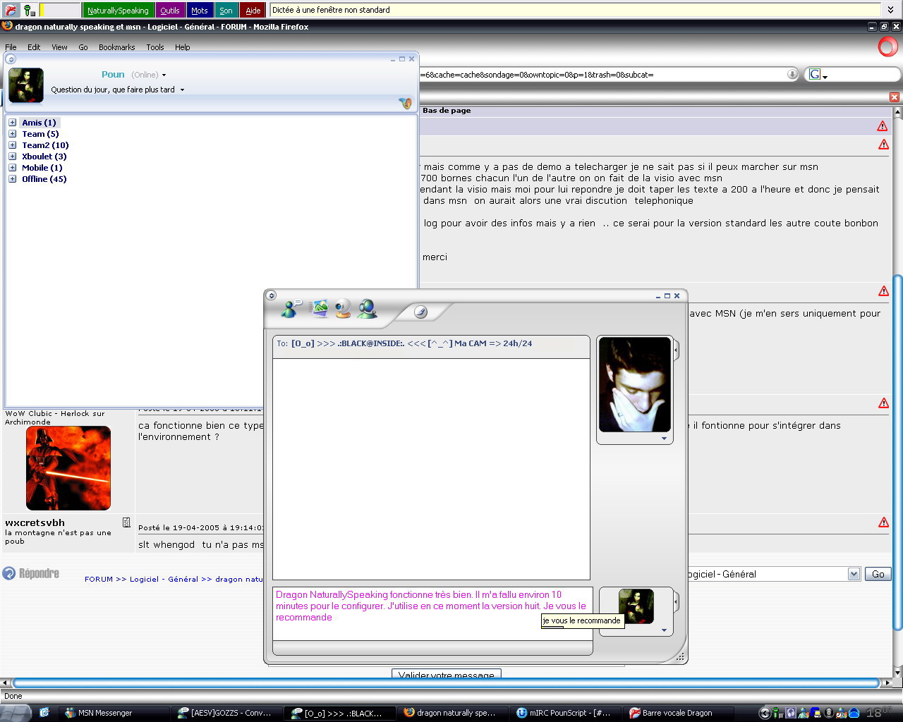 slt merci de vos reponse : encore quelque petite question … faut t-il l’acheter avec le microphone ou est ce qu’un microphone standard peut aller … j’ai lu sur micro hebdo qu’il fallait un pc puissant a 2 ghz au moins et 512 mo de mem vive pour la standard … et vous vous le faite aller sur quel config … merci je pense que je vais acheter ce log en version standard