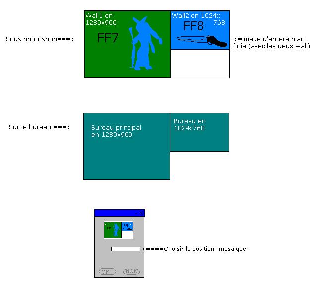 de plus mes 2 ecrans sont en 1280*1024 ( ils sont identiques , c est 2 mitsubishi pro 930 SB ) et j ai deja essayé de coller 2 images ensembles … meme en mosaique a chaque fois il ne me prend que l image de gauche ( ce qui est normal compte tenu du fait qu il fait la mosaique par ecran et non pour l ensemble d ecran )