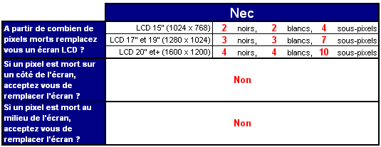 Qu’en pensez-vous ? Des problèmes de pixels défectueux et de SAV avec la marque Nec ?
