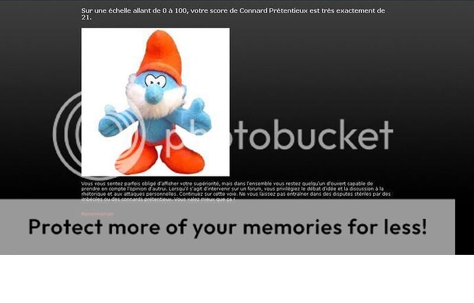 A voir les résultats, ça me rassure, je commençais à me trouver bizarre à force de lire les posts de clubic :peur: Finalement je préfère être grand schtroumpf que BHL :yeux2: